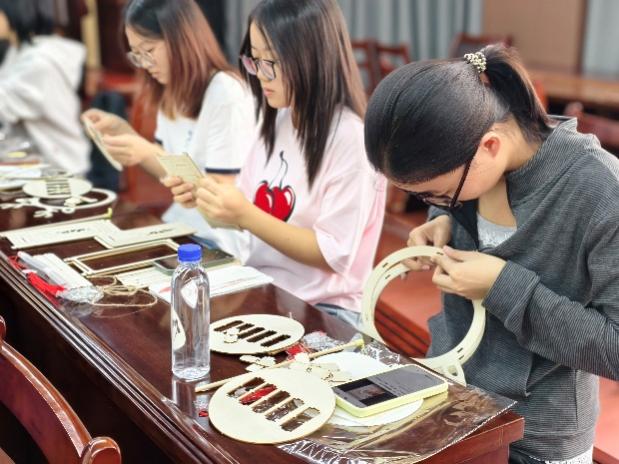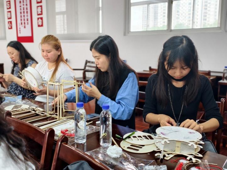 制作过程中,不时传来亲切的交流:“我来帮您把LED小灯串装进去”“您看,这样装饰是不是更漂亮?”细小的零件在指尖轻盈传递,真挚的情谊在心间静静流淌。随着一盏盏花灯渐次成型,参与者脸上绽放出如月般明亮的笑容——有人在灯面上勾勒出飘逸的桂花,有人细心贴上灵动的玉兔,还有人认真写下美好的祝愿,每一处细节都凝结着心意与巧思。