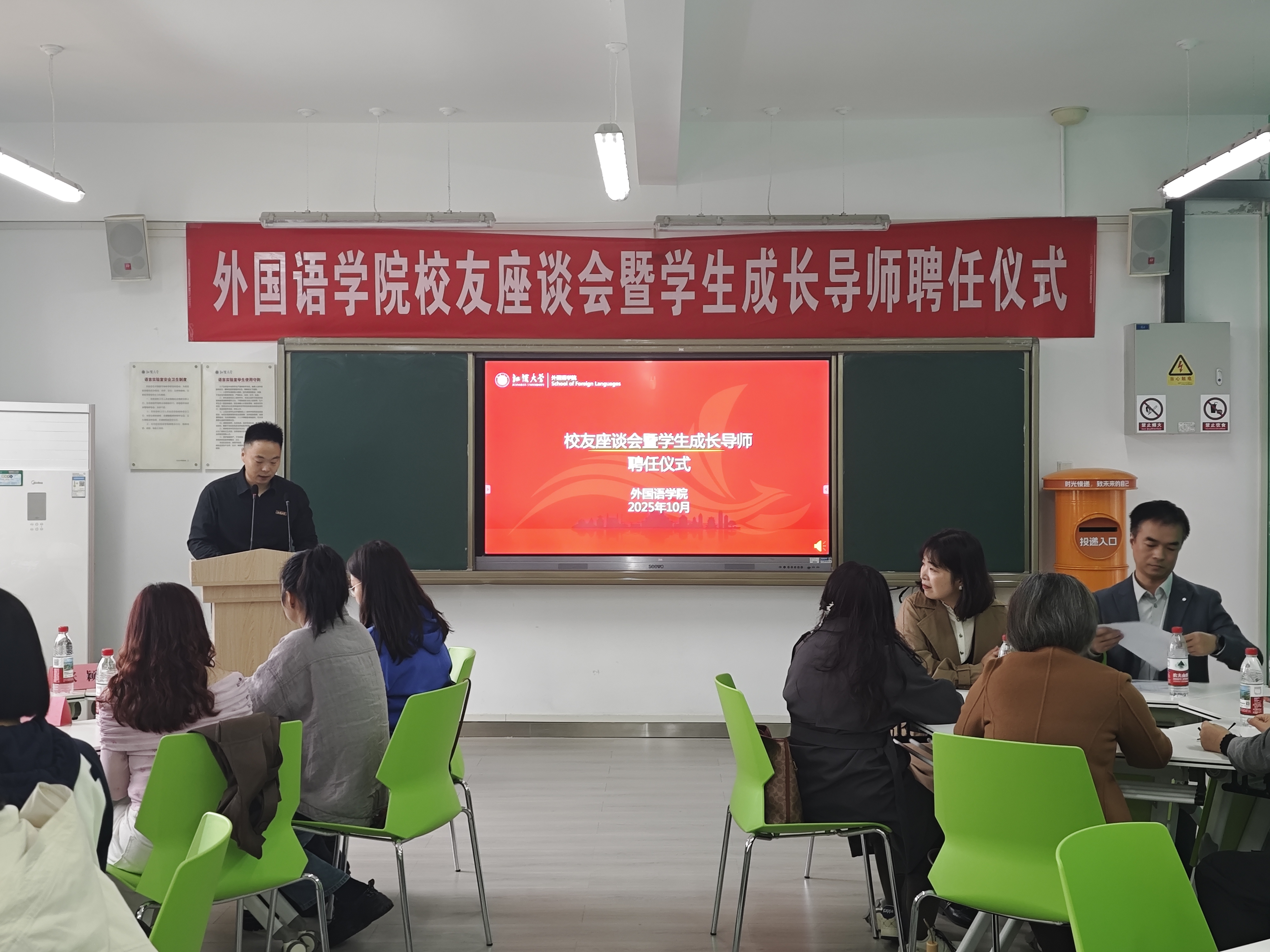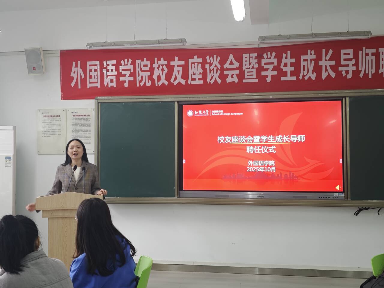 10月18日,外国语学院在J31 -213会议室举行校友座谈会暨学生成长导师聘任仪式。20余位校友重返母校,与在校学子齐聚一堂,共话成长历程,畅谈职业发展。