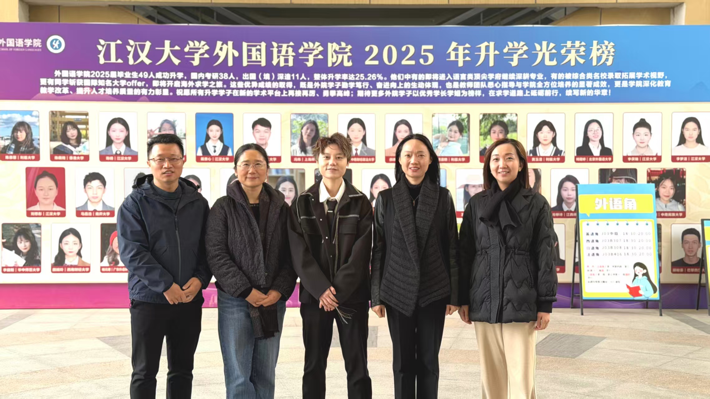 踏入校园,柯幻校友感慨万千,熟悉的教学楼、操场、图书馆,每一处都承载着满满的青春回忆。她向老师们详细汇报了毕业后的工作经历与成长收获,畅谈翻译专业学习对其学术基础、思维方式和国际视野的深刻塑造。她由衷表示,学院的严谨学风、老师的悉心教导以及丰富的实践平台,为自己后续海外深造与职业发展奠定了坚实基础。“无论走到哪里,外院永远是我的精神家园和坚强后盾。”话语之间,满溢着对母校的深情与感恩。